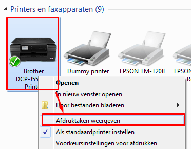 Klik met de rechtermuistoets op de betreffende printer en kies 'Afdruktaken weergeven':