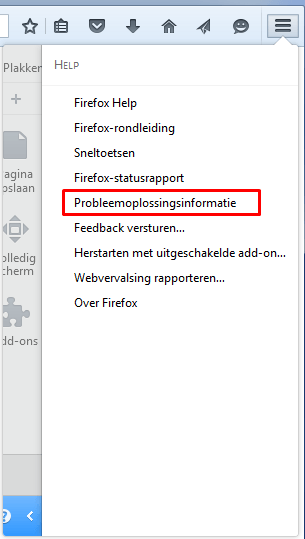 Open het instellingen-menu van Firefox en klik op het help-icoontje: